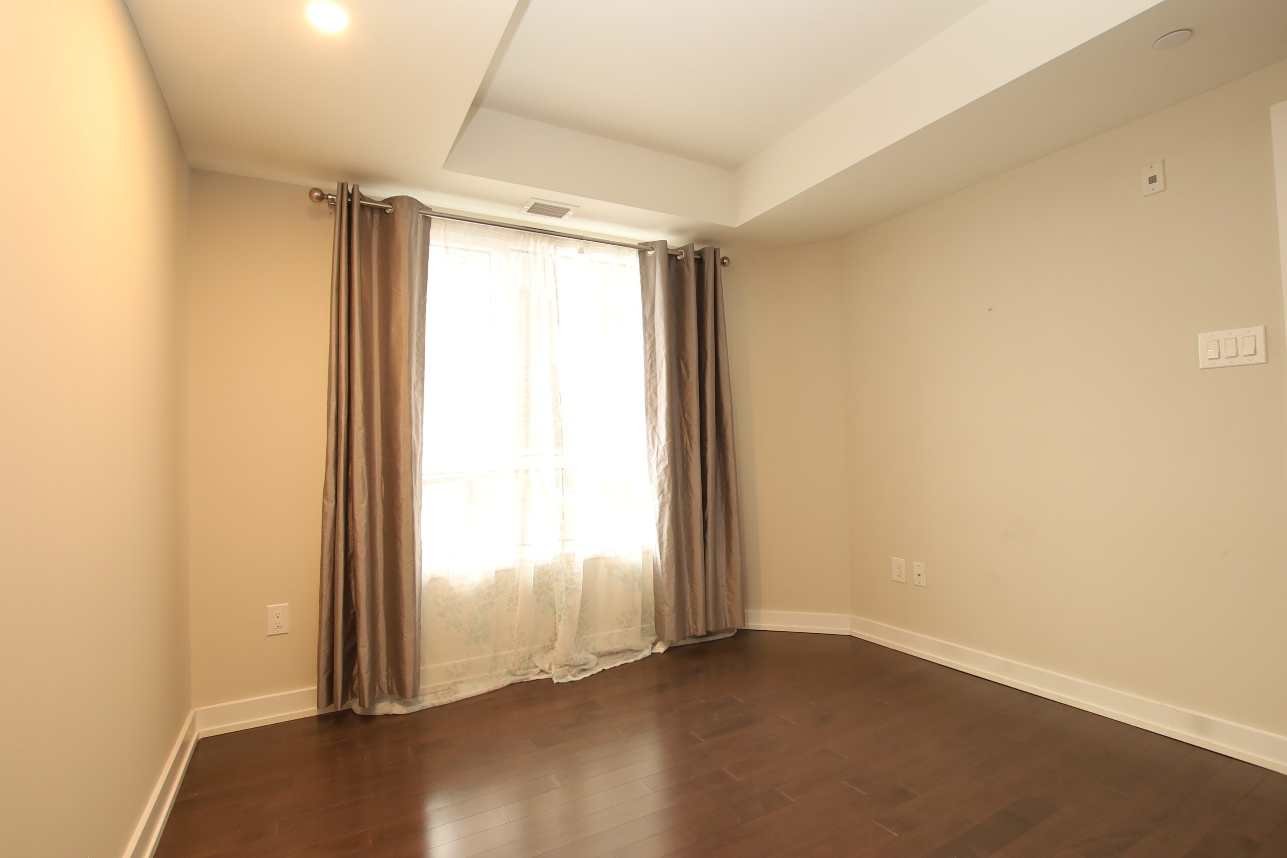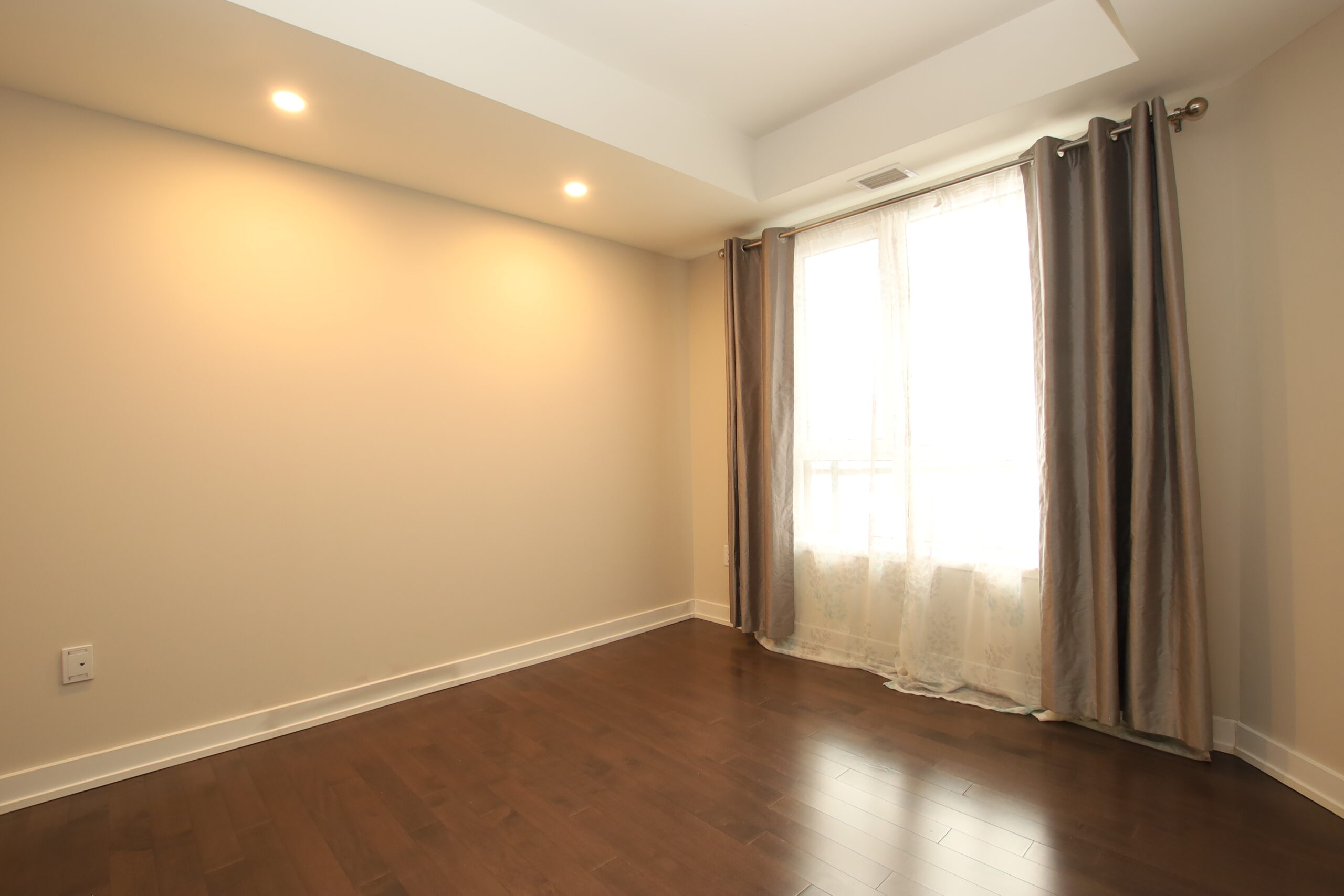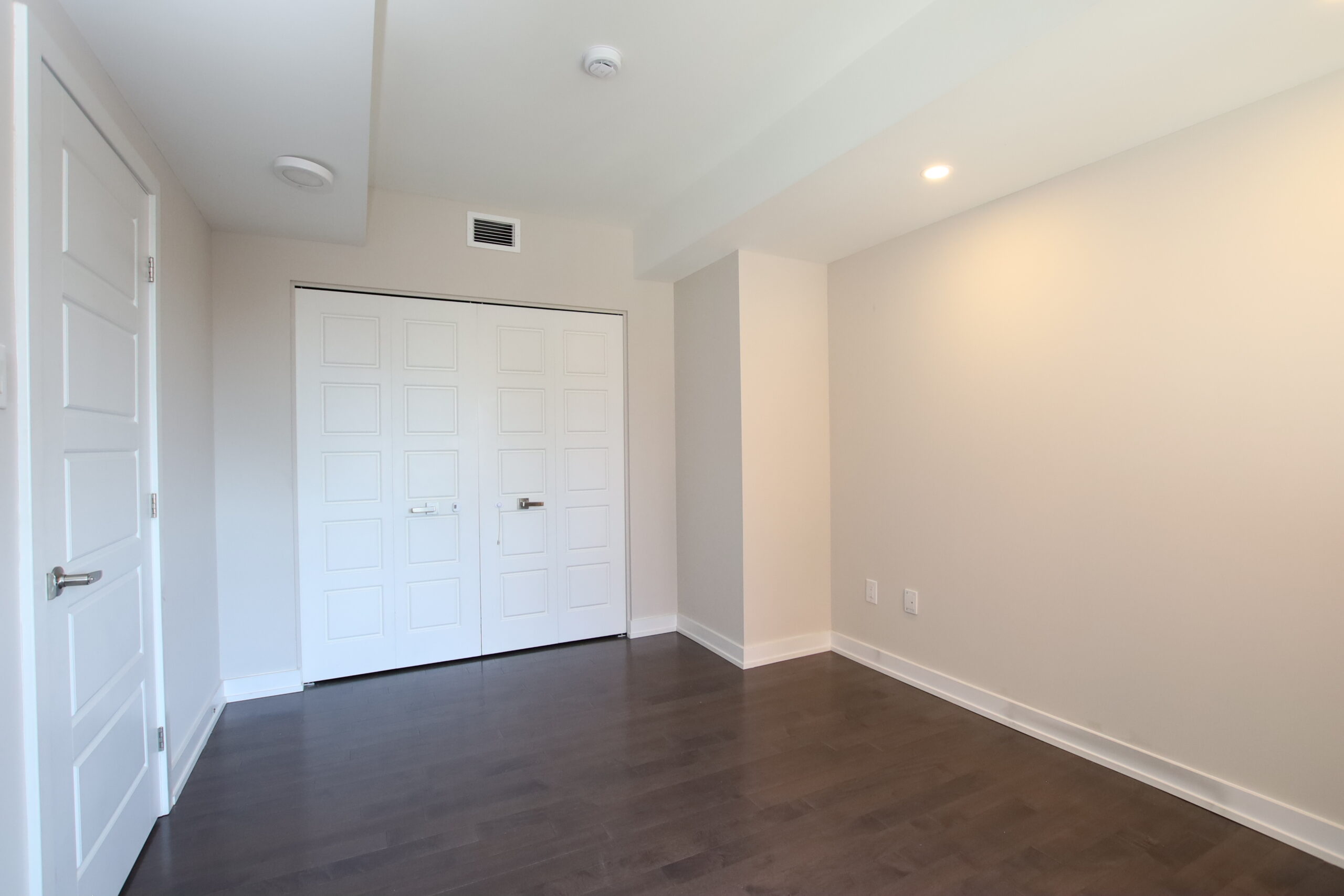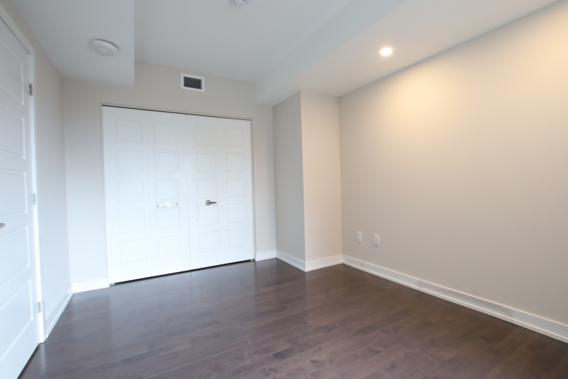 Bedroom has hardwood flooring, ample closet space, and a large window.