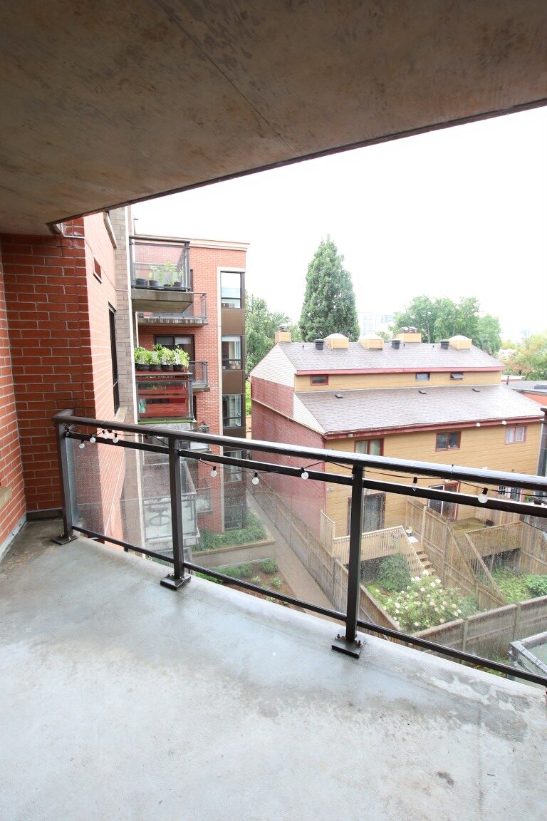 835 sq ft of indoor living space, plus large balcony.