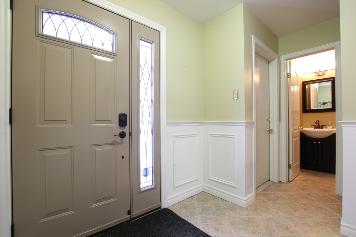 Entrance foyer and additional main floor powder room both have ceramic tiles flooring.