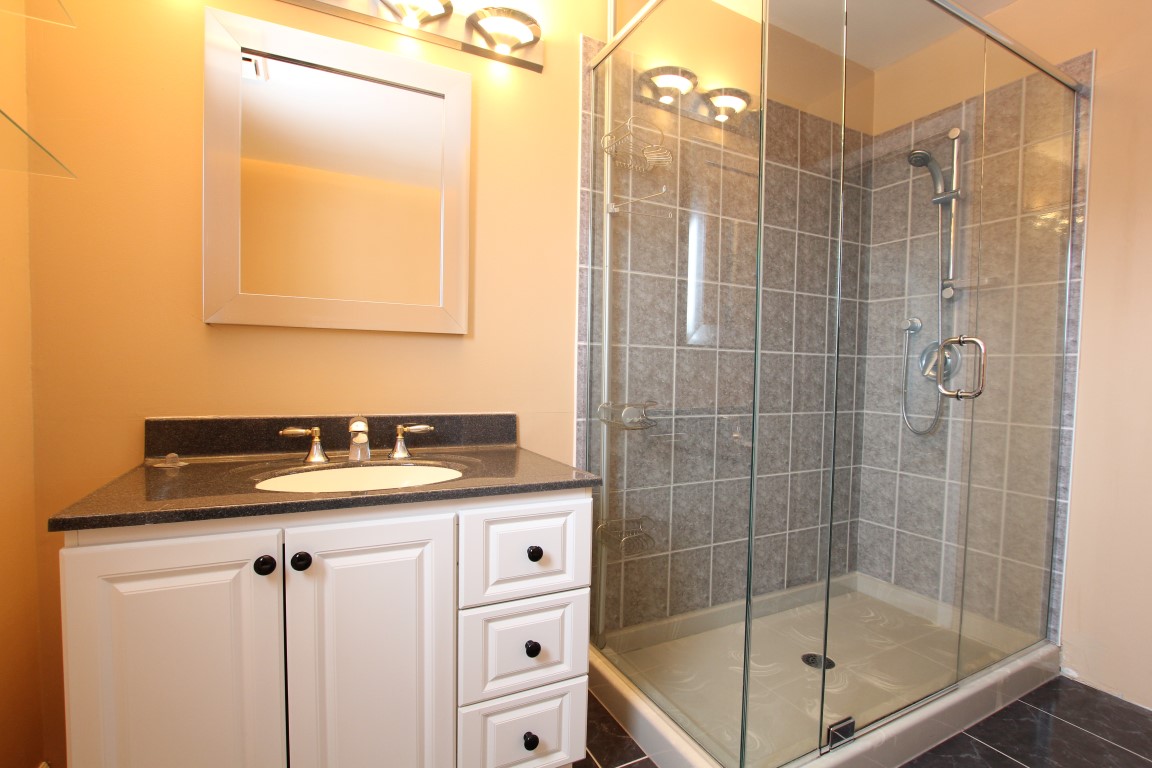 Master bedroom has a walk-in closet and an ensuite bathroom with ceramic tile flooring, a stand-alone shower with tiled walls, as well as a separate bathtub with tile surround.